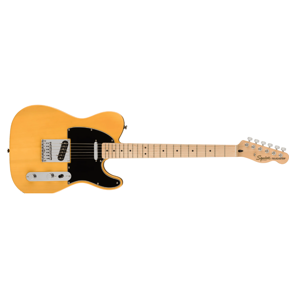 La Squier Affinity Series Telecaster ofrece el diseño clásico de la Telecaster con excelente relación calidad-precio. Cuenta con cuerpo ligero de álamo sólido o chambered poplar (versión Thinline), mástil en maple con perfil cómodo “C”, diapasón en maple o laurel con radio de 9.5″ y 21 trastes medium jumbo, y dos pastillas single‑coil para tonos nítidos y articulados.